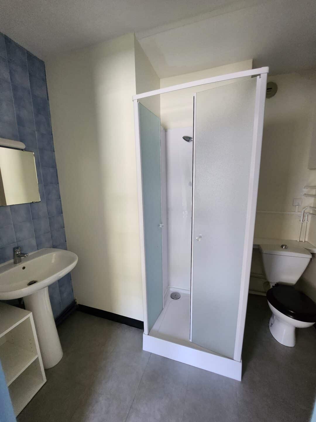 D’une salle de bain avec lavabo, cabine de douche et WC.